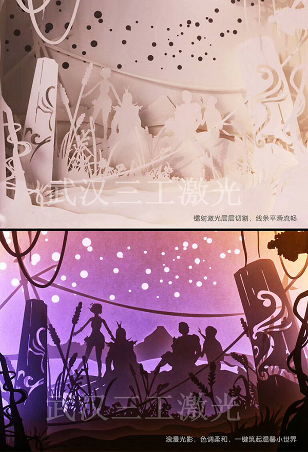 武漢三工激光紙張激光鏤空機(jī),從根本上打破了傳統(tǒng)紙張模切技術(shù)局限性,激光鏤空機(jī)進(jìn)行雕刻加工無需開刀模,圖案形狀可任意設(shè)計(jì),可通過繪圖軟件設(shè)計(jì)好圖案導(dǎo)入操作系統(tǒng),幾秒至十幾秒的時(shí)間一幅精美的鏤空?qǐng)D案就誕生了。并且激光鏤空機(jī)速度快、切口平整、線條細(xì)膩、精細(xì)度高(可達(dá)0.01mm)、切口漂亮無碳化痕跡。激光鏤空雕刻本身就具有很強(qiáng)的立體感,也經(jīng)常被用于立體紙模拼圖、立體賀卡、立體書籍以及各類剪紙工藝品等行業(yè)的加工。下面呈上一些樣品工大家賞析!