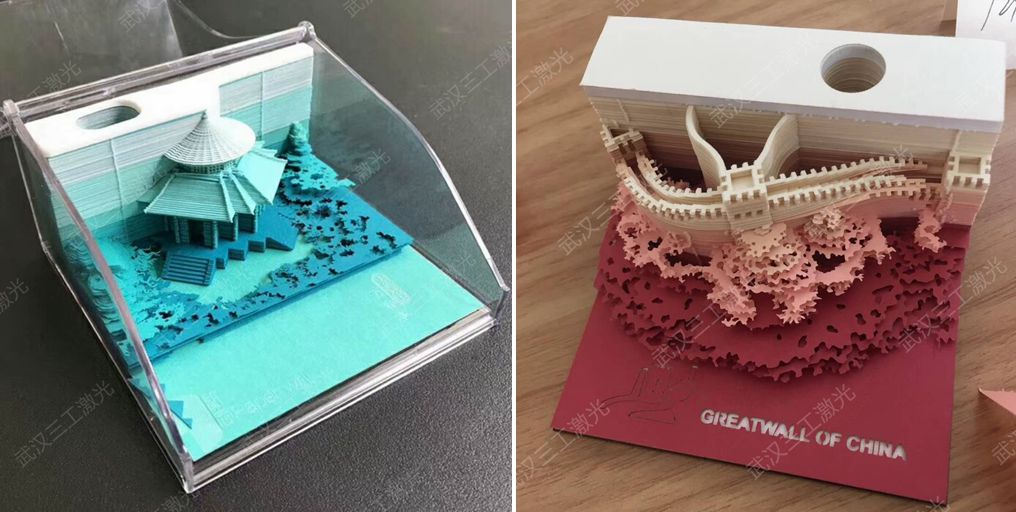 激光鏤空雕刻的立體藝術便簽紙,將世界名勝古跡、城市地標的主題建筑景觀濃縮在微小便簽紙中,通過撕開層層疊疊的紙張,逐漸呈現(xiàn)出建筑的整體形狀。產品獨特的互動體驗與趣味性創(chuàng)造了地域文化的新形勢。而中國非常具有代表意義的建筑就是天安門以及故宮天壇了,激光鏤空雕刻的標簽,講古建筑的精致以及大氣融合。