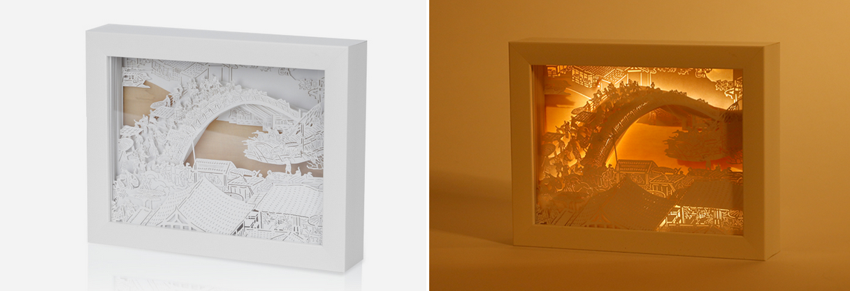 光影紙雕是采用中國的剪紙和皮影藝術的兩者結合,運用現(xiàn)代的審美觀設計創(chuàng)作出來的富有極具觀賞價值和收藏價值的個性裝飾品。光影紙雕燈利用紙雕與光影呈現(xiàn)了充滿豐沛創(chuàng)造力與奇幻風格的作品,創(chuàng)造出令人的驚艷的藝術紙雕作品。紙雕燈激光鏤空進行雕刻加工無需開刀模,快速成型,切口平整,圖形可任意形狀,激光鏤空雕刻的造型具有很強的立體感。