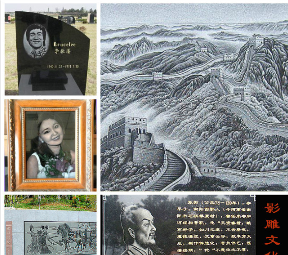 影雕可廣泛應(yīng)用于家居賓館廟宇壁畫裝飾、碑像寫真、案頭擺設(shè)、紀念禮品,不僅是饋贈之工藝佳品,更是具有很高藝術(shù)欣賞價值的美術(shù)收藏作品!