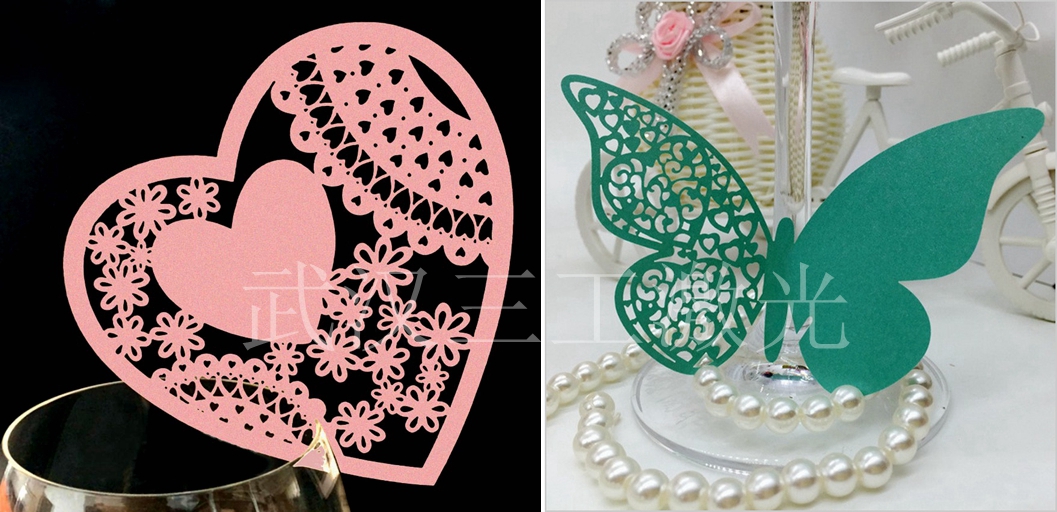 在眾多的印刷制品中特別的存在,那就是各類裝飾卡片,酒杯裝飾卡,果汁杯卡、蛋糕插牌等等,小小的卡片點(diǎn)綴著我們的生活。單一的造型很難滿足大眾的審美需求,個(gè)性化的定制廣受歡迎。各類裝飾卡激光鏤空雕刻機(jī),可以輕易的模切任意復(fù)雜的圖案,不受設(shè)計(jì)限制,個(gè)性化定制成本大大降低,并且激光鏤空模切的裝飾卡片精美獨(dú)特。