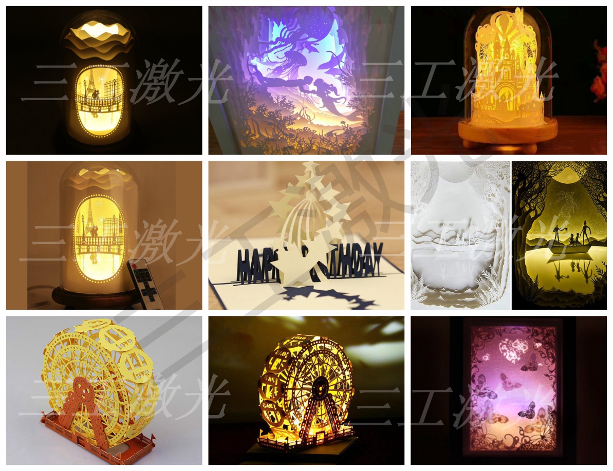 利用激光和各種類型的不同紙張,在創(chuàng)作的時候是先設(shè)計好圖案,然后根據(jù)圖案將眾多紙張用激光逐一切割好,最后再將切好的紙張再一組合起來。錯綜繁復的層次、精美絕倫的圖案讓人眼花繚亂,我們與其說是剪紙或畫作,倒不如說是立體感十足的激光雕塑。這就形成了藝術(shù)品光影紙雕燈!